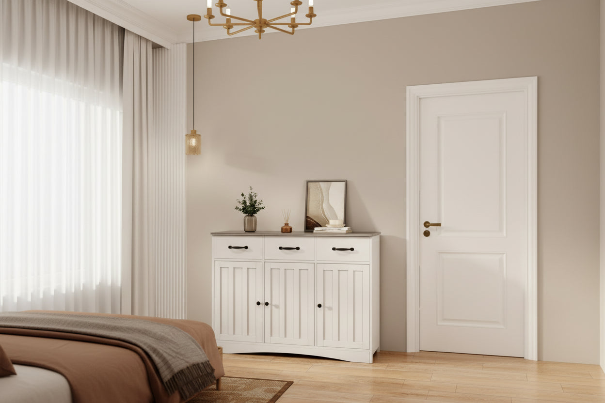 Double-door storage cabinet with natural woven texture